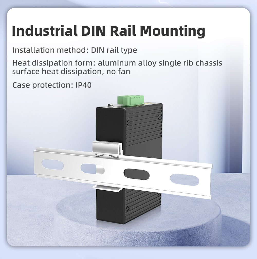 The industrial Ethernet switch adopts high-performance imported switching chip to ensure the stable transmission of large traffic data, and supports 10/100/100M adaptive electrical port; Support -40~85℃ operating temperature, industrial power protection, indicator status display, guide rail/rack installation, fan-less thermal housing design, to achieve real readout, convenient and fast, but also meet the EMC4 level protection, IP40 protection, 6000V lightning protection and other indicators, can adapt to a variety of harsh industrial environment application needs.