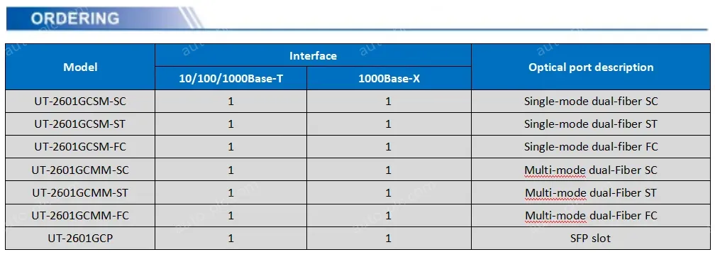 • UOTEK 1 1000Base-T Ethernet ports and 1  1000Base- X optical port Network Fiber Optic Transceiver