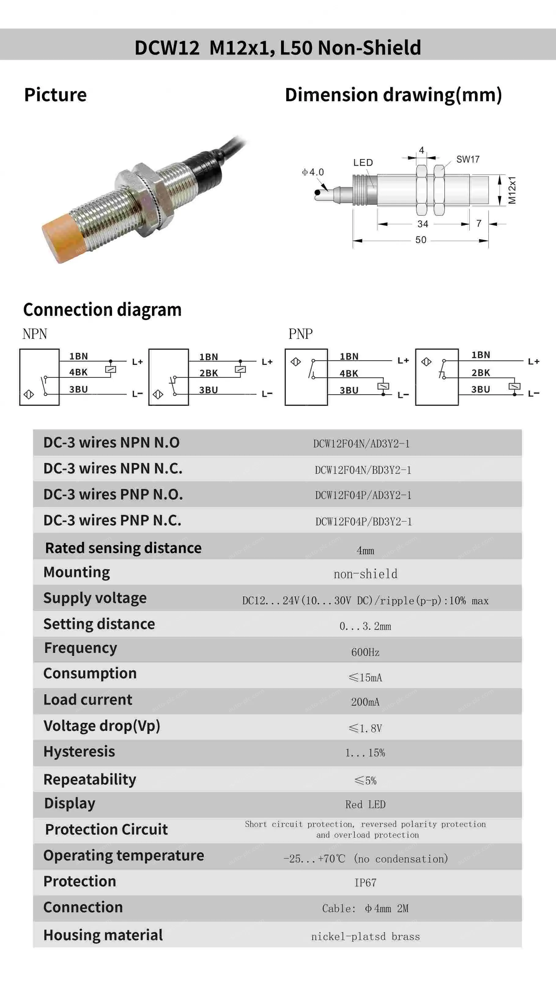• DCW12F04N/BD3Y2-1 NPN N.C. DC12-24V