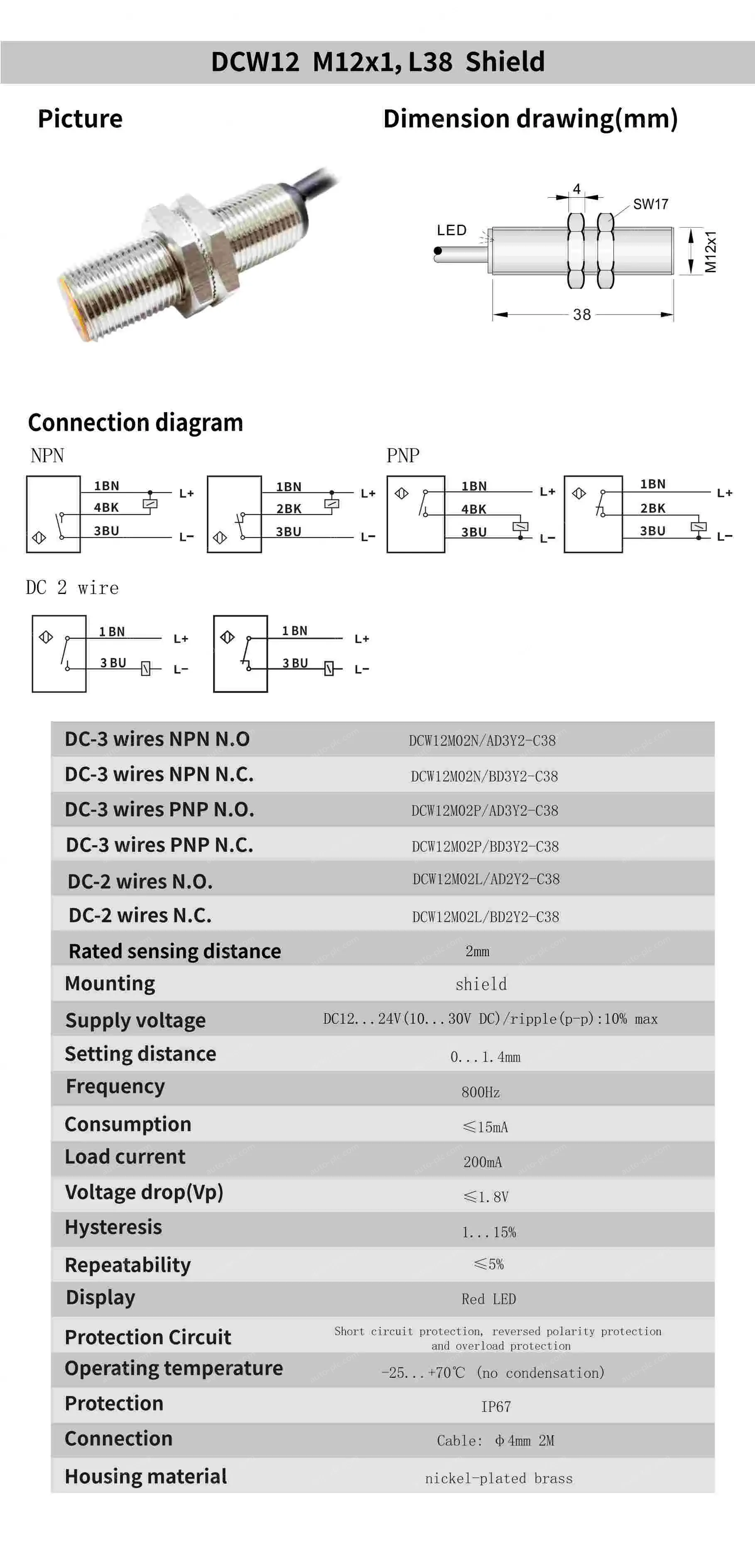 • DCW12M02N/BD3Y2-C38 NPN N.C. DC12-24V