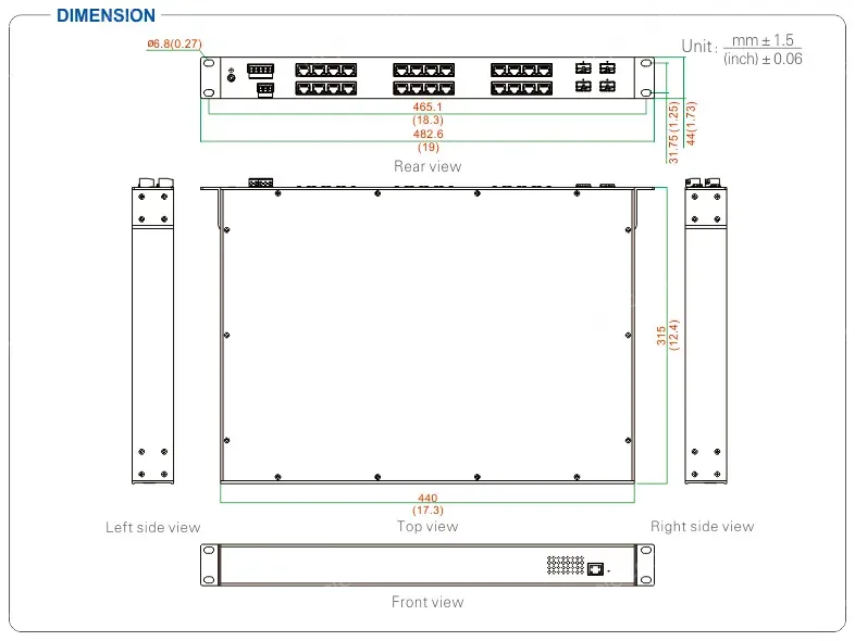 RJ45 ports: 10/100/1000Base-T(X),auto MDI/MDI-X