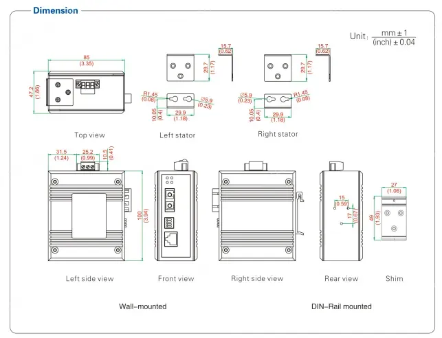 RJ45 interface: 1*10/100Base-TX, auto detection, full/half-duplex,