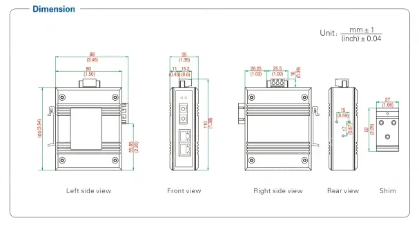 - Input voltage:12/24/48VDC(10.8~52.8VDC), supports reverse polarity protection
